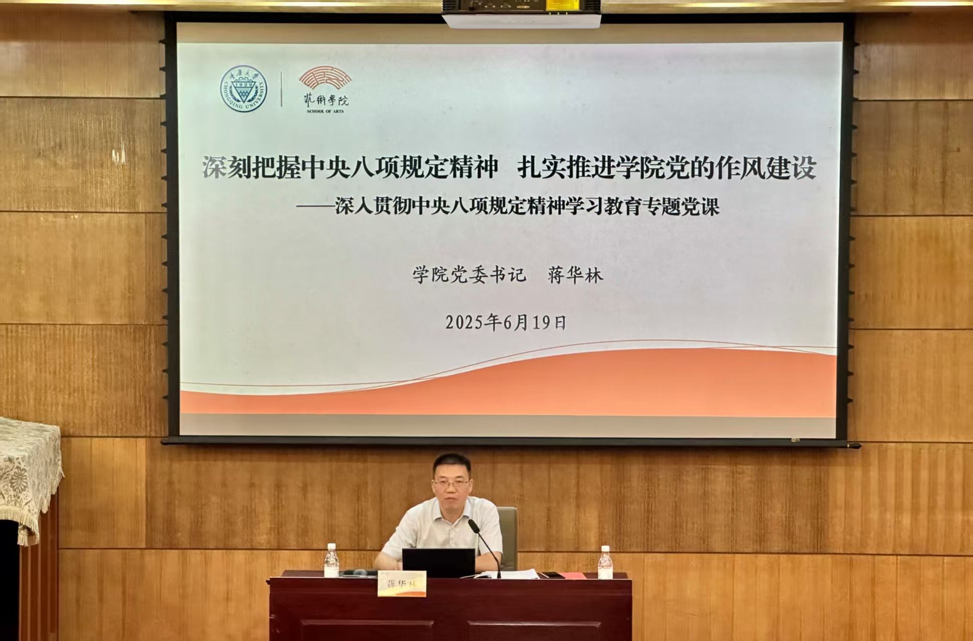 为深入贯彻中央八项规定精神,持续推进学院党的作风建设走深走实,2025年6月19日下午,御书屋 党委书记蒋华林在学院办公楼学术报告厅,面向学院全体师生党员和系室负责人讲专题党课,并开展警示教育。蒋华林的专题党课以《深刻把握中央八项规定精神 扎实推进学院党的作风建设》为题,主要结合学习教育开展以来,学院党委和领导班子及其本人学习研讨、查摆问题、集中整治等情况,从在全党开展学习教育的背景讲起,重点讲述了...