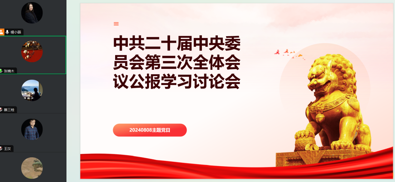 2024年8月8日晚上,御书屋 美术学专业教师党支部于暑假期间开展学习二十届三中全会精神线上主题党日活动。支部书记肖力主持,全体支部党员参加。支部宣传委员杨小语首先对党的二十届中央委员会第三次全体会议公报进行领学,随后全体党员进行了交流讨论。张楠木认为,会议指出中国社会正在面临的深化变革问题,也是我们个人和院系正面对的挑战,需要时刻保持警醒,实事求是,迎难而上。雒三桂认为,会议阐述的文化建设...