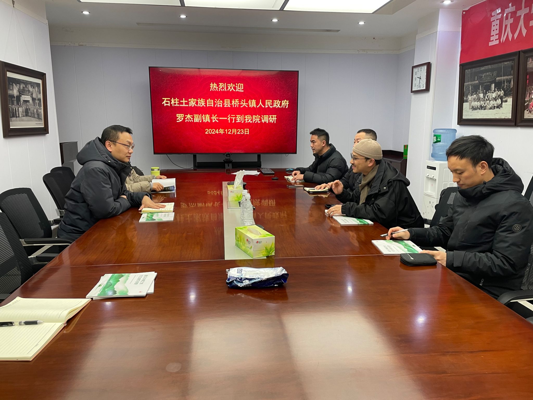2024年12月23日,石柱土家族自治县桥头镇副镇长罗杰一行来御书屋 调研洽谈共建实习实践基地事宜。调研座谈会在学院办公楼第三会议室举行,副院长夏进军及美术学系主任肖力、本科教学秘书向媛参加。会议由夏进军主持。 夏进军介绍了御书屋 实习实践基地的整体建设情况。他强调,实习实践基地的建设是提升学生实践能力的关键环节。严格的建设要求和考核规定是为学生提供更优质的实践学习保障。 肖力针对绘画专业...