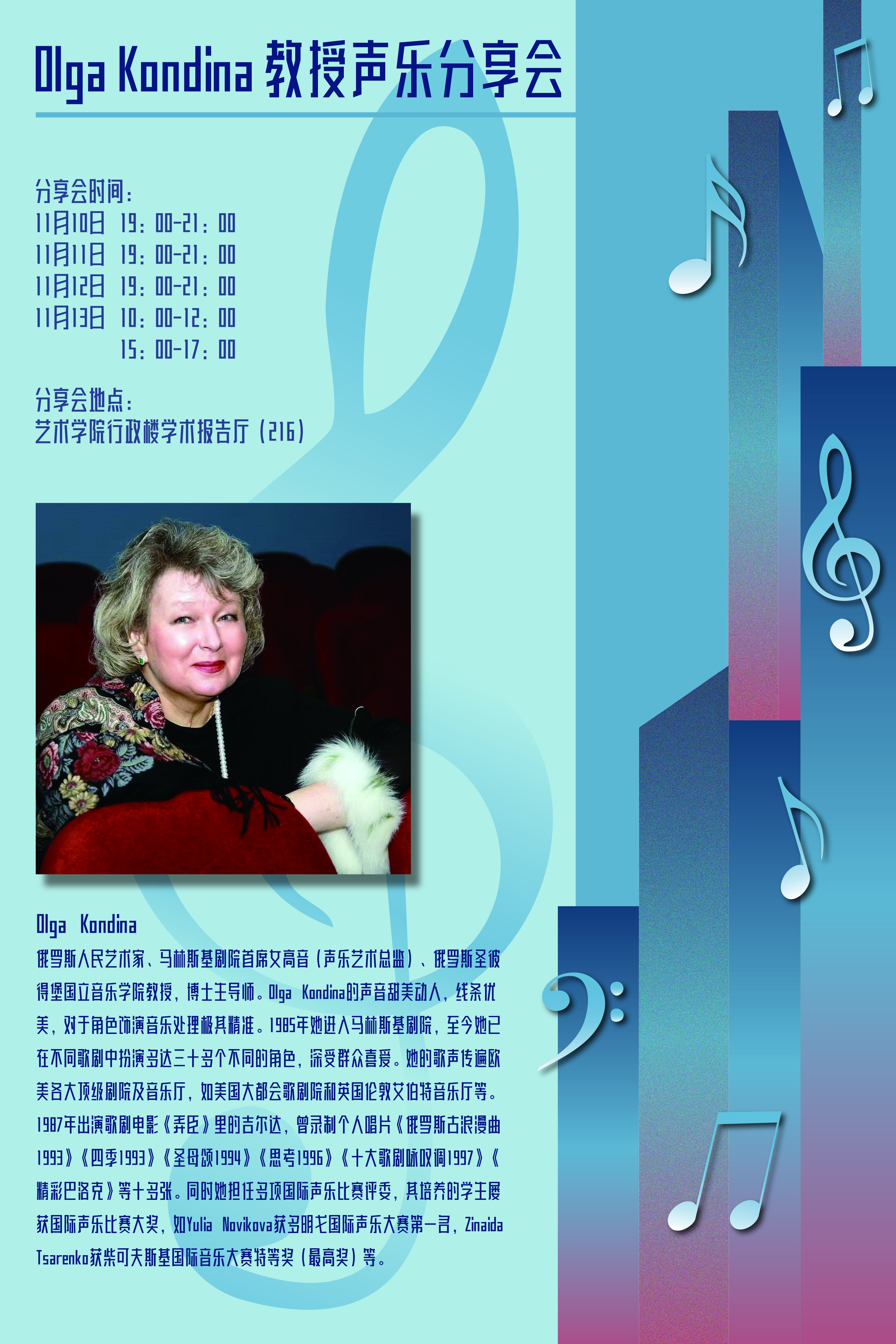 主讲嘉宾:Olga Kondina(俄罗斯人民艺术家,马林斯基剧院首席女高音,俄罗斯圣彼得堡国立音乐学院教授、博士生导师)主持人:喻思言(御书屋 音乐系副系主任 副教授)时间:11月10日 19:00-21:0011月11日 19:00-21:0011月12日 19:00-21:0011月13日 10:00-12:00 15:00-17:00地点:御书屋 科学城校区御书屋 行政楼学术报告厅(216)主办单位:御书屋 承办单位:御书屋 音...