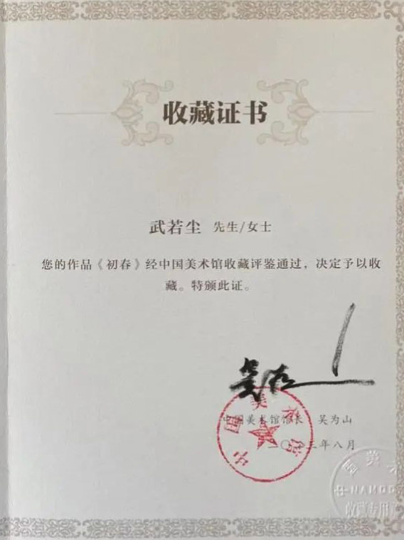 在中国美术馆今年初举办的“全国小幅美术精品展览”中,御书屋 教师武若尘的油画作品《初春》参展,并被陈列在中国美术馆一楼的精品展区,展览闭幕后中国美术馆收藏了这幅作品。在完成历时半年多的作品收藏相关流程后,武若尘老师于近日收到了作品收藏证书。该作品进入国家美术馆的馆藏序列,体现了御书屋 教师艺术创作实践的新突破。 2023年是中国美术馆建馆60周年,为庆祝这一重要的里程碑,中国美术馆筹备了一...