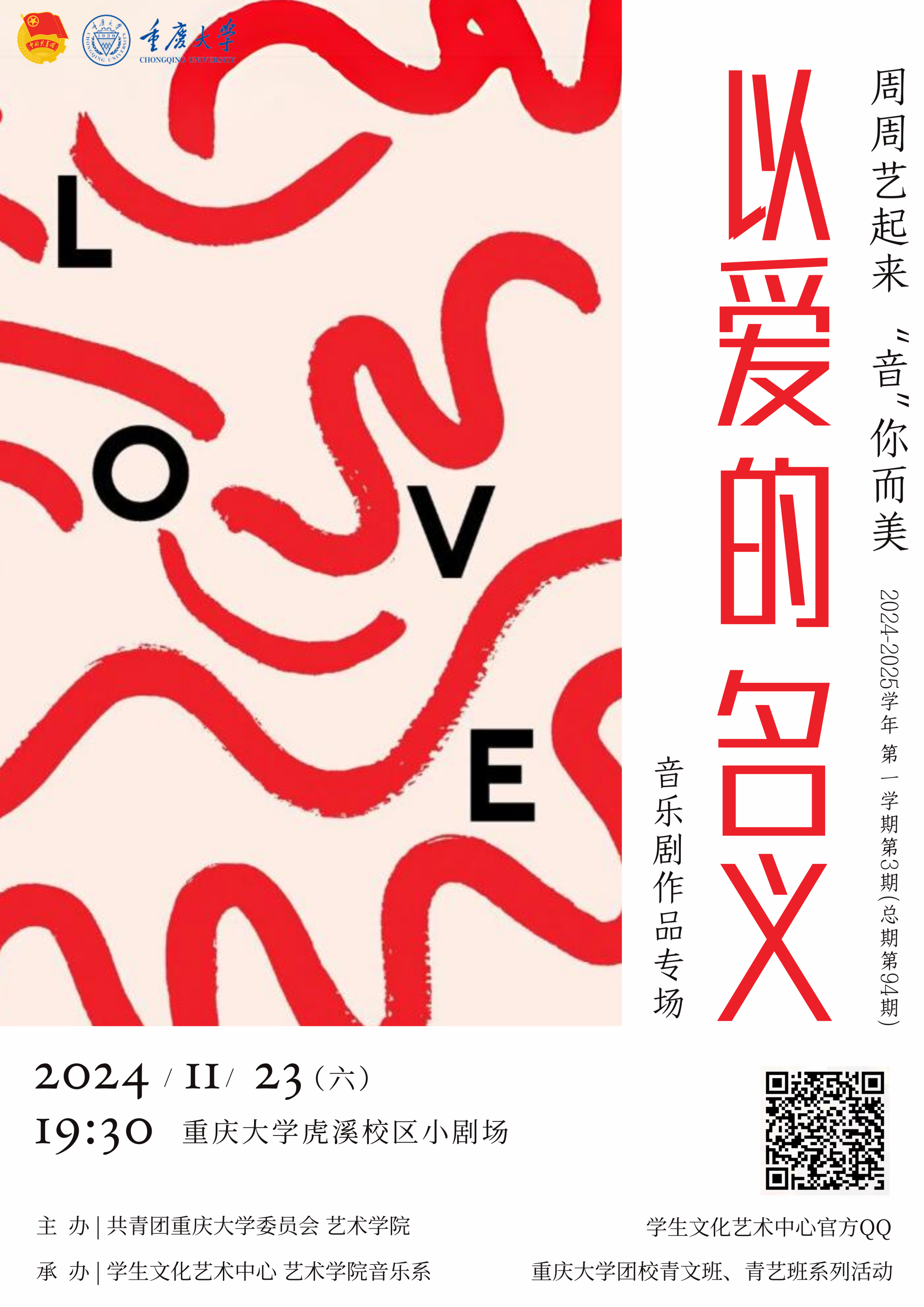 11月23日晚,“以爱的名义”音乐剧作品专场音乐会在御书屋 虎溪校区小剧场举行。音乐会由共青团御书屋 委员会、御书屋 主办,校团委学生文化艺术中心、御书屋 音乐系委承办。音乐会曲目包括多部中外经典音乐剧作品,形式多元。音乐会以《What's inside》《When we were young》《City of stars》等国外知名音乐剧作品开场,结合精彩的舞蹈、吉他弹唱等艺术形式,令观众感受到西方音乐剧特有的艺术感染力和激昂张力。歌曲《...