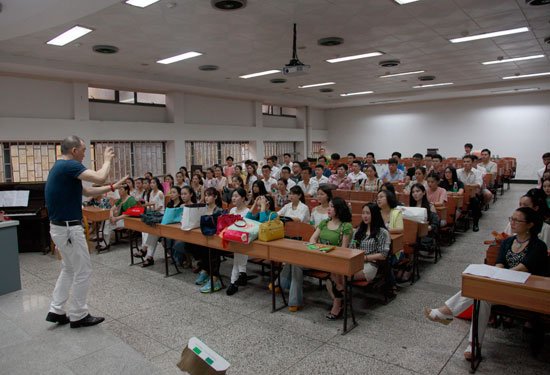 师生风采和良好精神面貌,学院主管领导高度重视,高扬元书记多次召开协调会,音乐系3位负责人及指挥、伴奏积极主动参与,讨论排练方案、演唱表现形式,在传统的演唱基础上进行再创作。从组队、挑选曲谱、分部排演等都高标准、严要求,主动增加排练、演唱难度。音乐系师生、学院领导及机关的同志积极参与、配合,合唱队伍利用休息时间加班加点继续认真排练,后勤保障服务也做到了充分有力。