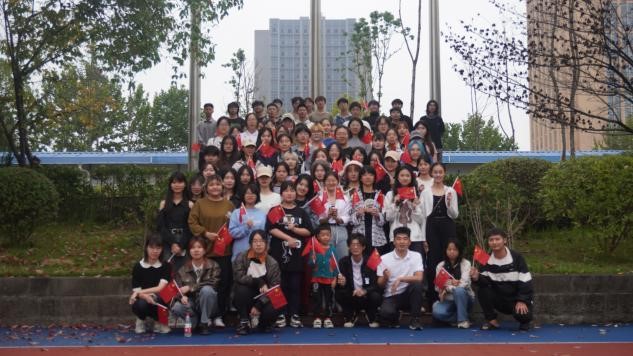 秋高气爽,丹桂飘香。上午10点,同学们在虎溪校区足球场国旗下开展了宣誓活动。面向迎风飘扬起的五星红旗,爱国之情油然而生,辅导员陈龙与同学们齐唱国歌,祝福伟大祖国母亲74岁生日快乐。