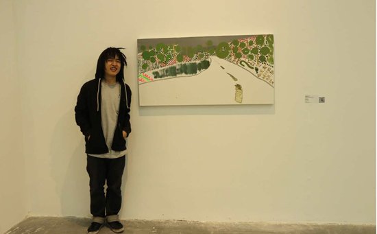 油画系2012级本科在读学生。笔者专门采访了刘艺曦同学,见到刘同学,和照片里的相比,头发剪短了,看起来更精神,也成熟了许多。被问到作品入选之后生活有什么变化?他说:“只是因为即将毕业,从寝室搬到外面住了,头发剪了,没什么变化,仅仅是一个展,最重要的是学到东西”。随后谈及此次被入选的作品时,他说:“被入选的作品只是三张中的其中一张,我认为评委选择这幅作品,有一部分原因是因为像霍克尼”;当被问及作品是否是对大卫·霍克尼的致敬时,他谦虚的说:“有段时间,霍克尼在同学圈里挺火,致敬谈不上,就是学习吧,毕竟路还长。”;同时他还谈到一些艺术家“个人喜欢曾梵志和周春芽,其实重要的是精神层面的东西,觉得那更有意思”。在与刘同学交流的过程中,笔者发现,他是一个坦白直率、热爱生活的大男孩儿。他总是将“生活才是最重要的”挂在嘴边,并且他作品的灵感都是出自对生活的感悟。作为即将毕业的2012级本科生,他说他毕业以后还是要准备工作的,但同时还是要坚持“画画”这件事儿,并且给下面正在学习或准备学习绘画的学弟学妹们建议“首先要热爱生活,其次要懂得对于理想的坚持并且把握住每次机会,再次就是多看画展开阔下眼界”,最后,他说“感谢御书屋