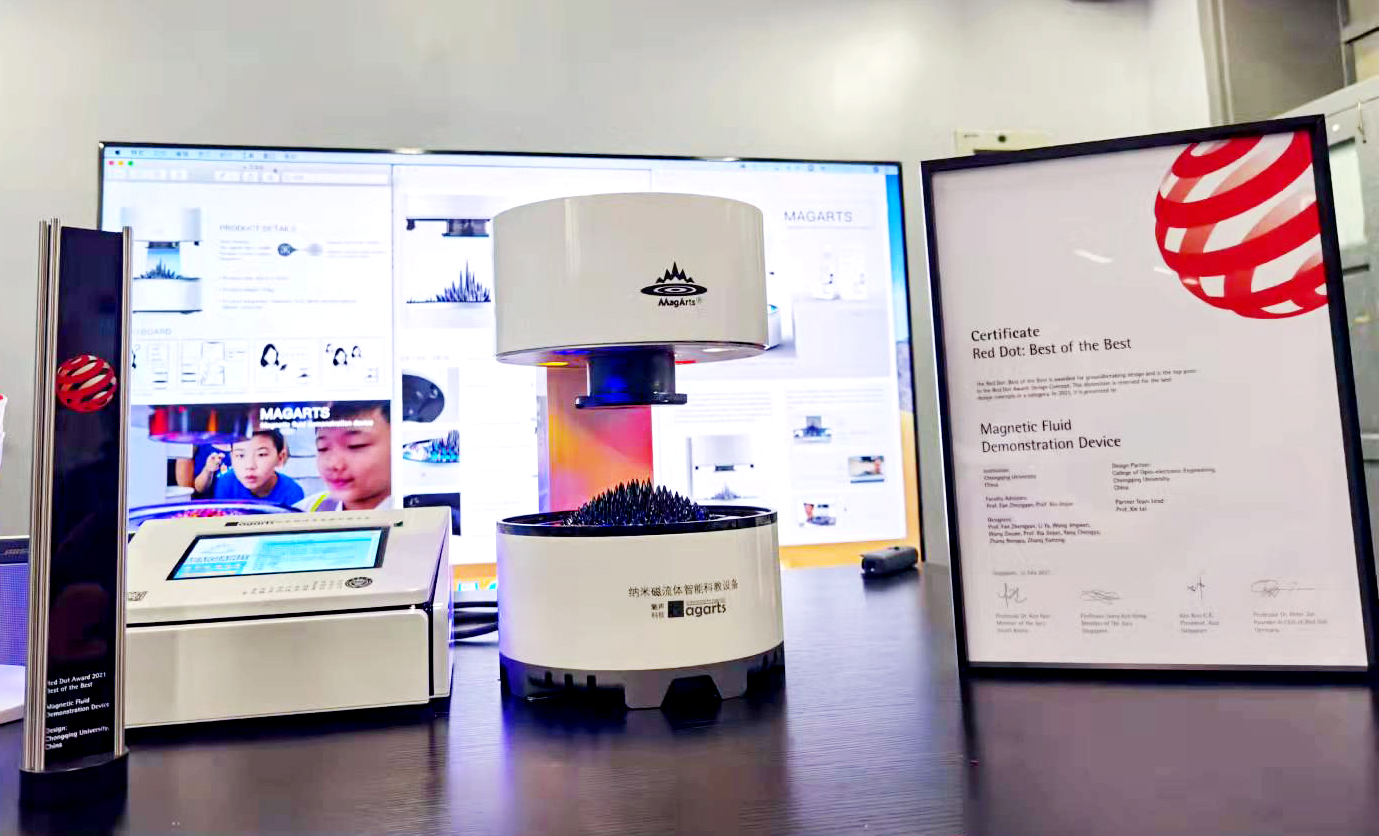2021年红点设计奖落下帷幕。由御书屋 夏进军副教授、范正妍副教授与光电学院谢磊副教授共同组建的设计团队凭借设计作品《Magnetic Fluid Demonstration Device磁流体演示仪》获得Red Dot Award 2021: Best of the Best 红点设计至尊奖。