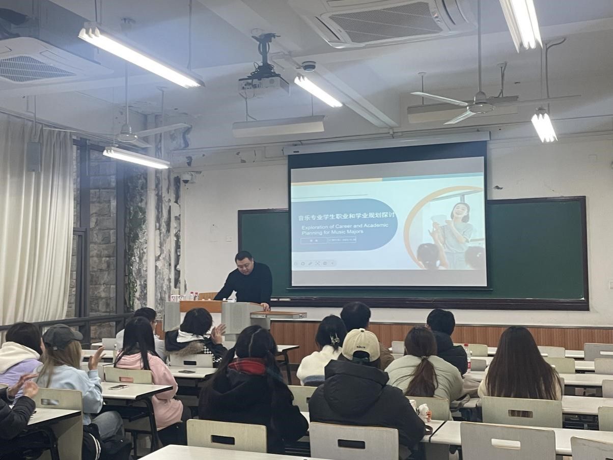 覃巍是御书屋 2009级校友,现为重庆邮电大学传媒御书屋 数字媒体与动画系教师。他的分享主题为《音乐专业学生的学业规划和职业规划》,向同学们分析了综合性大学音乐专业的特色与优势,并强调了学业与职业规划的重要性。通过对专业学习方法的指导以及对职业规划不同层面的剖析,同学们更加明确了自身的职业定位。