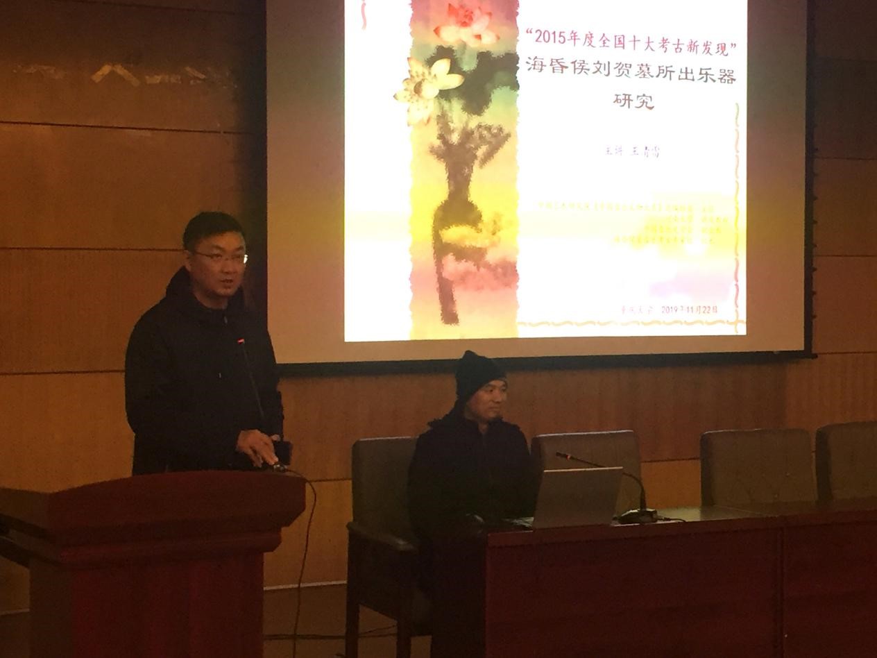讲座伊始,王清雷教授对海昏侯墓出土的音乐文物进行了概述,并讲解了墓主刘贺的身份背景。紧接着,王清雷教授就自己团队对海昏侯墓出土音乐文物进行的两次考察,表达了自己的初步认识。