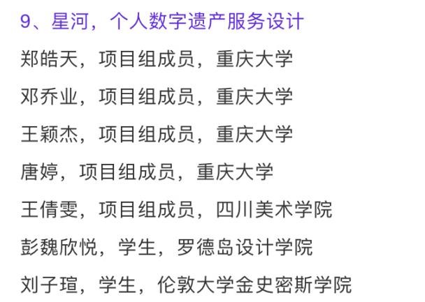 本次大赛共设有26个奖项,其中涵盖了9个单项奖和1个梦想大奖。提名本次TTF Dream 大赛的两支研究生团队分别是“望穿事务所”项目组和“人类研究所”项目组。“望穿事务所”的设计作品“星河—个人数字遗产服务系统设计”由御书屋