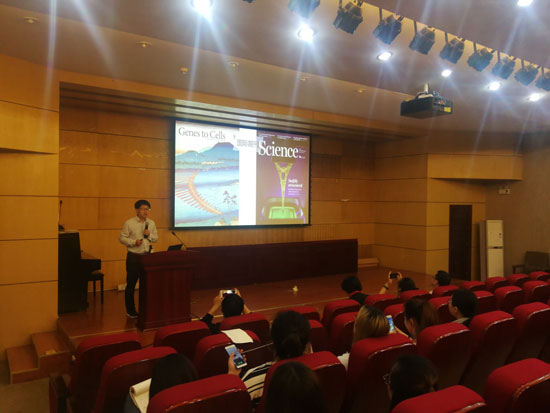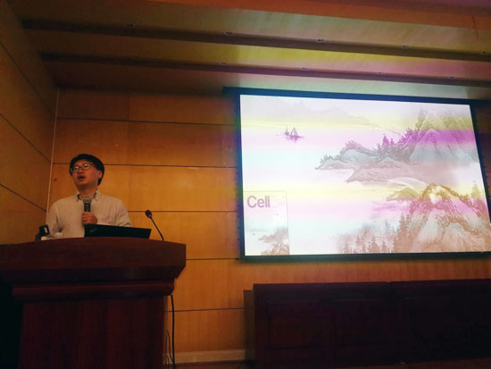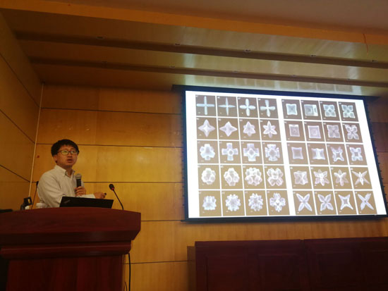 张育新教授以《材料之美》为题,从《Science》、《Cell》等期刊的封面设计开始,从材料的尺度;材料的仿生;电镜下微观材料的结构美、形式美;结构表征所表现出来的色彩美等角度,通过大量案例及精美的图片,展示了材料在微观世界里的特征,并对材料的合成等技术进行了科普。