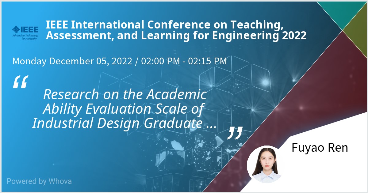 设计学系范正妍副教授、李刚副教授和夏进军副教授带领研究生团队参加IEEE TALE 2022国际学术论坛并与会进行了三场论文汇报,设计学研究生任符瑶、李赟、唐庆同学分别代表团队在线进行了分享。