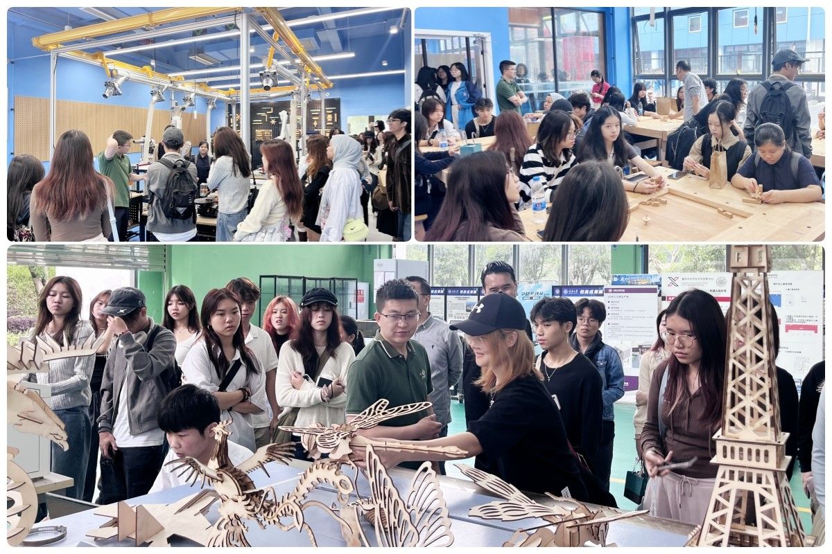 学生交叉创新中心。从3D打印实验室到木工制作实验室,每一处都展示了我校学生在艺术与科技融合方面的探索与实践。游学团学生现场感受了科技与创意的碰撞。