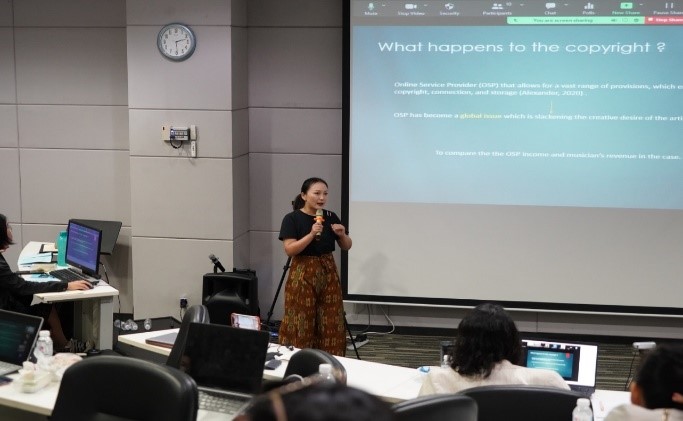 音乐系、目前在马来西亚博特拉大学攻读博士学位的黄雪洁,分享了最新研究成果“内容或平台:发展中的音乐生产社区的现实”,得到了现场学者们的高度认可。