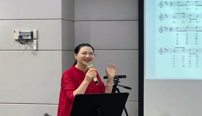音乐系主任肖玲副教授分享了她的研究成果“‘啰儿调’的传承与传播在社区音乐建设中可行性探究”,并在现场演唱了“啰儿调”代表民歌《太阳出来喜洋洋》,使现场气氛高涨。同时,本科和硕士均毕业于御书屋