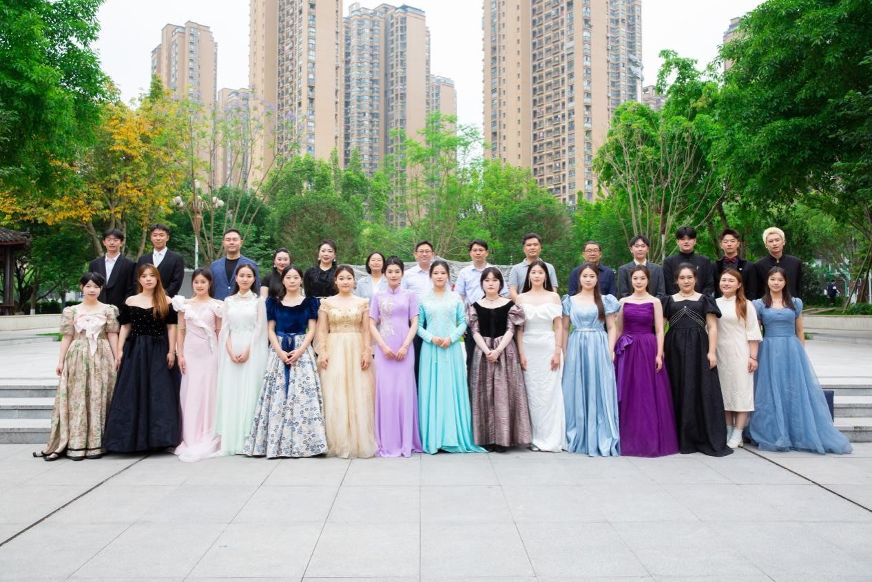 最后,本场音乐会在《我爱你中国》和《我和的我祖国》合唱中落下帷幕,悠扬的旋律让同学们深深沉浸在高雅艺术的魅力中。表演结束后,在座嘉宾与参加表演的师生合照留影。