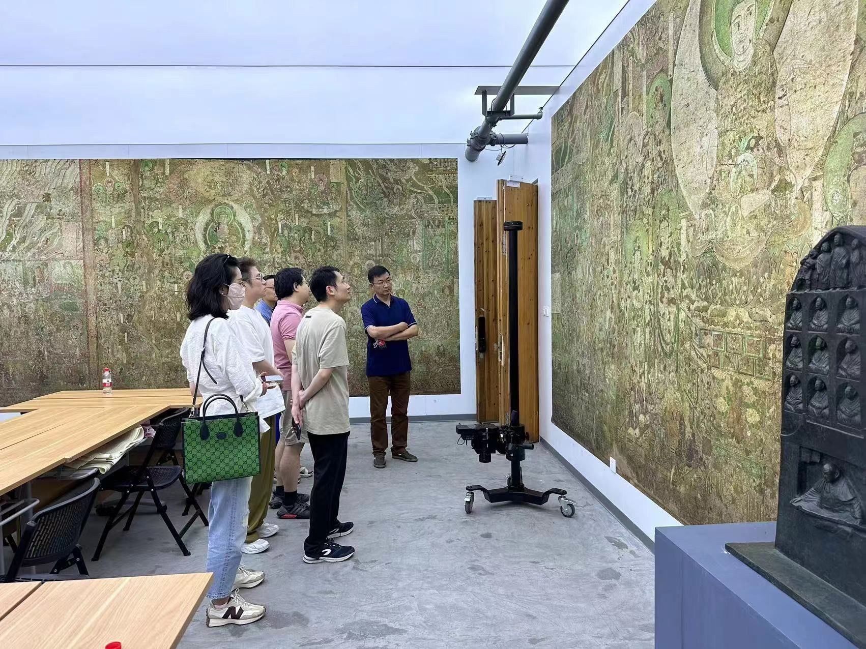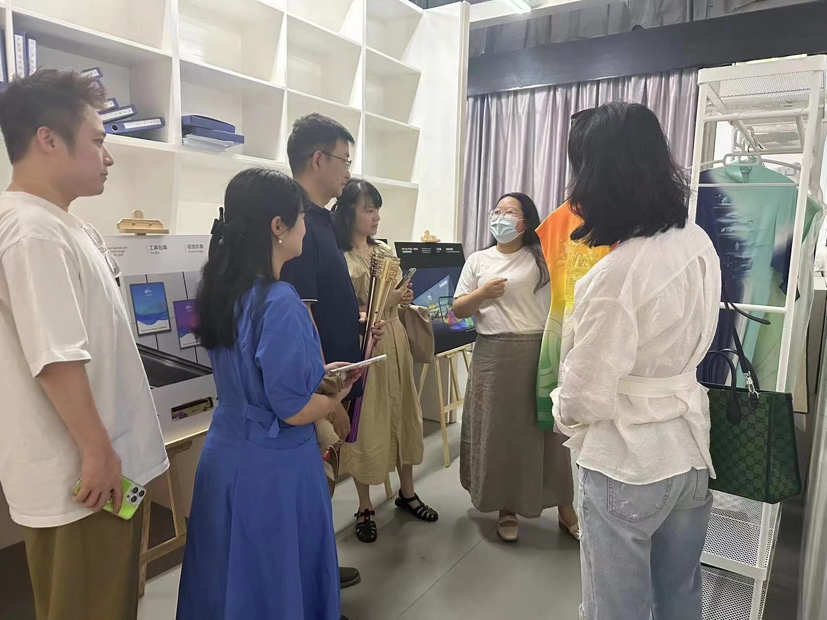 在传统热成型手工技艺与数字化设计文化和旅游部重点实验室,调研人员参观了创新设计学院的跨学科教学课程《传统造型法则与现代构造方法的数字化呈现》,以及《龟兹壁画艺术研究与实践》、《西域传统文化遗存保护传承创新的教学与活化实践》、《铁佛寺彩塑虚拟仿真数据研究、采集与推广》等项目研究成果。通过深入交流,雒三桂表示此行对学院设计学科的发展有较好借鉴意义,同时学院教师需要走出来多调研、多沟通,进一步深化推进人才培养、学术研究、实验室建设、学科发展、合作平台等工作。