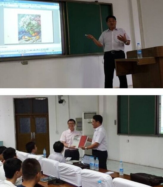 副院长郑亮教授主持,部分师生及书画爱好者聆听了此次讲座。讲座伊始,许世虎院长以自身经历为例向大家讲述了自己从初学工艺美术专业到画水彩水粉、油画等多方面绘画创造的多元化艺术创造的过程,他在绘画创作多元化的艺术求索道路上持之以恒的追求精神让在座的师生无人不钦佩。在许世虎院长的写意人生的绘画作品中,展现出了艺术教育创作的个性化、艺术教育创作的地域化、艺术教育创作的多样化、艺术教育视野的国际化。他独到的观点和绘画的技法走在时代的前沿。让御书屋