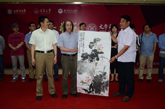 的对口支援工作起步较晚,但近两年成绩斐然,相互间在教学科研等方面交流合作高效畅通,藉此“三校”联展盛会,希望双方在未来能够同心协力,再创辉煌!”天津师范大学美术与设计学院党委书记陈元女士对文学御书屋