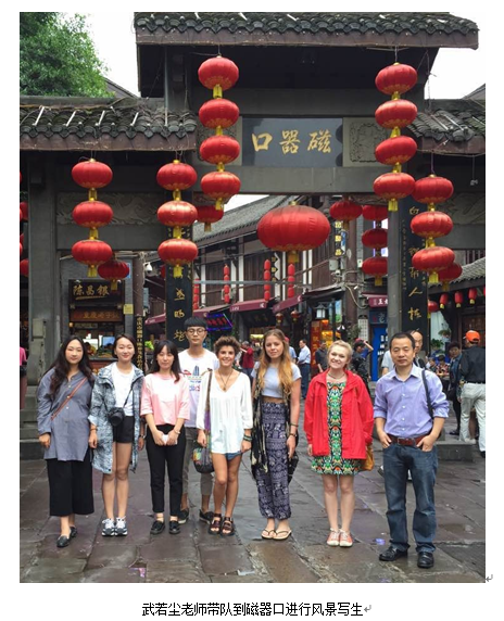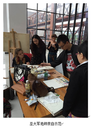 此次“御书屋 中英学术交流工作营——美术学工作坊项目”为期15天。期间,艾玛教授和3名英方美术学专业学生参观了御书屋 许世虎教授工作室、油画、国画工作室;在史论研教中心副主任彭佳老师、外事秘书周珏老师带领下,考察了重庆大足石刻、博物馆、磁器口等人文景点;与御书屋 国画系主任熊显林教授、油画系主任王海鸥教授、油画系李犁教授、巫大军教授和武若尘老师及学生们一起作画、交流。在交流课堂上,熊显林老师亲自示范了一张水墨画,并将水墨赠与英方同学;王海鸥老师悉心指导油画半身人像课程,鼓励中英双方学生们要敢于创新;李犁老师在课堂上的人像示范赢得了英方师生的大加赞赏;巫大军老师和武若尘老师亲自带队,分别率领美术学工作坊的学生们在学校周边和磁器口进行风景写生。在课下,中英双方的同学们热情地交流起双方国家的教学、生活、文化,建立了深厚的友情。参加此次美术学工作坊的英国学生蕾切尔(Rachel Dowbekin)在谈及这次考察与课堂交流的感受时说(翻译):“我对中国传统艺术和文化十分感兴趣,来到中国看到这些历史遗迹让我感到震撼,中国的老师和同学们非常热情、友善。”
