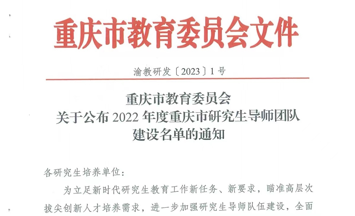 为进一步加强研究生教育和导师队伍建设,充分发挥导师团队在深入推进“双一流”建设和高等教育内涵式发展中的引领示范作用,按照《重庆市教育委员会办公室关于开展 2022 年度研究生导师团队项目申报工作的通知》,推荐以孙俊桥教授为团队带头人的《“巧于因借、交叉造血”学科机能提升与创新实践 》设计学交叉学科组研究生导师团队参评重庆市研究生导师团队建设。