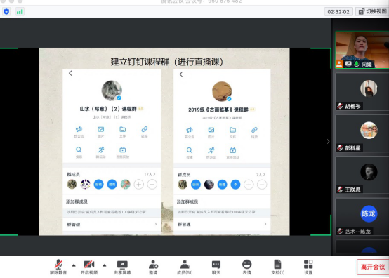 视觉传达系况成泉老师分享了雨课堂和钉钉课堂的使用技巧和经验,雨课堂主要专注于高校线上线下结合式的专业教学;钉钉则是建群式的团队管理教学。此两个平台不仅可以直播讲课、分享屏幕、外挂顶部摄像头,把教学的全过程都记录下来了,为线上教学提供了很大便利,为学生回看、重复看提供了学习便利。