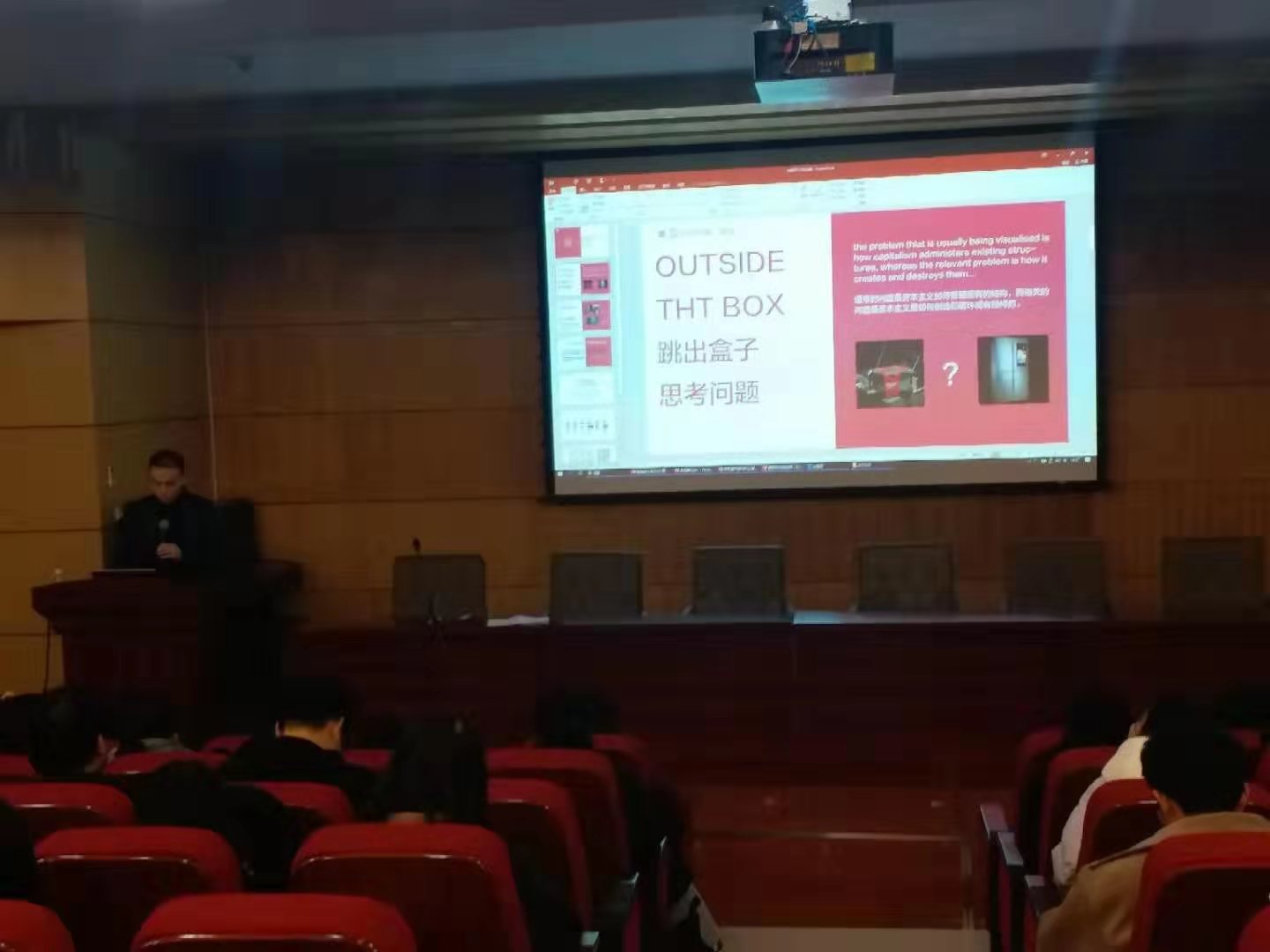 学生代表2016级本科生张德寅(保研至浙江大学),2018级研究生杨宇辰,2017级研究生樊敏,2019级研究生郑昊天纷纷上台发言,以“低头拉车,抬头看路”,“海阔凭鱼跃 ,天高任鸟飞”,“设计思维”几大主题向台下老师与同学们分享了各自的专业学习心得与体会,回忆了一年时间里的专业成果与感悟,感恩御书屋