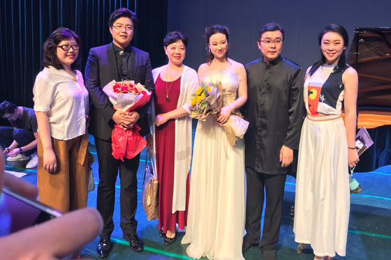 晚上七点半,张佳林教授带着两位中央音乐学院的学生许洋和周旎在虎溪小剧场献上了一台中外歌剧选段音乐会,从经典的《波西米亚人》到现代的《奔月》,演绎了不同风格的曲目,把艺术感染力表现得淋漓尽致,现场座无虚席,掌声雷动,舞台上下共谱艺术共鸣的华章。最后,伴随着美妙的歌声,经久不息的掌声,热情洋溢的笑声,这次活动圆满结束!