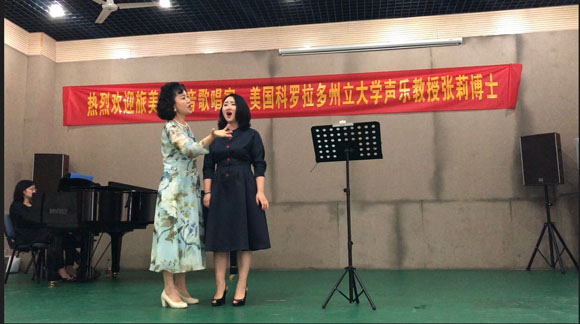 国际合作与交流处的大力协助下,2018年6月1日,旅美女高音歌唱家、美国科罗拉多州立大学声乐教授张莉博士应邀在御书屋