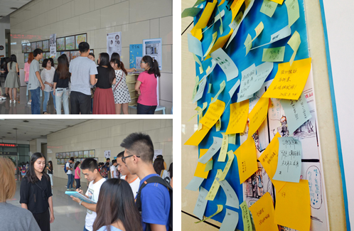 展出的过程中,众多其他专业的学生提出了一些较为实际的建议,也为设计者留下了他们的宝贵意见,使本专业的同学更加了解用户的想法,而不仅仅只局限在自身的设计构想中,使得大家对自身的设计有一个深刻的反思,得到肯定的同时也认识到了不足,为今后的设计积累了很多实战经验。
