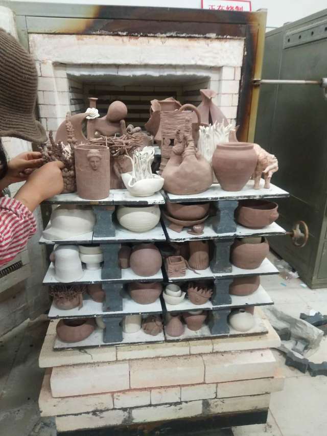 在课程过程中,我们遇到了各种各样的难题:因陶瓷的脆性导致作品总是断裂、干湿不同导致连接处在烧制时需要靠釉的粘性相粘接、拉坯时陶土过湿作品会突然的坍塌、烧制过程中釉滴落下来粘在铁板上……这些难题成为了那些完美陶艺作品的绊脚石,但残缺、不完美的过程正是是我们要去经历的。正如那句古言:“不经一番寒彻骨,怎得梅花扑鼻香”。只有我们克服了这些难题,才有了5月3号的陶瓷展览。