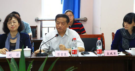 会上,重庆文化艺术职业学院副院长宋延军博士代表学院致欢迎辞,重庆市高教学会高校美育专委会会长、御书屋 院长许世虎教授传达了中国高等教育学会美育专委会2014年年会、2015年学术会议精神,重庆市高教学会副秘书长刘颖代表高教学会作了讲话,中国高等教育学会美育专委会常务副会长、北京大学著名教授彭吉象传达了教育部关于加强学校美育教育工作的精神。