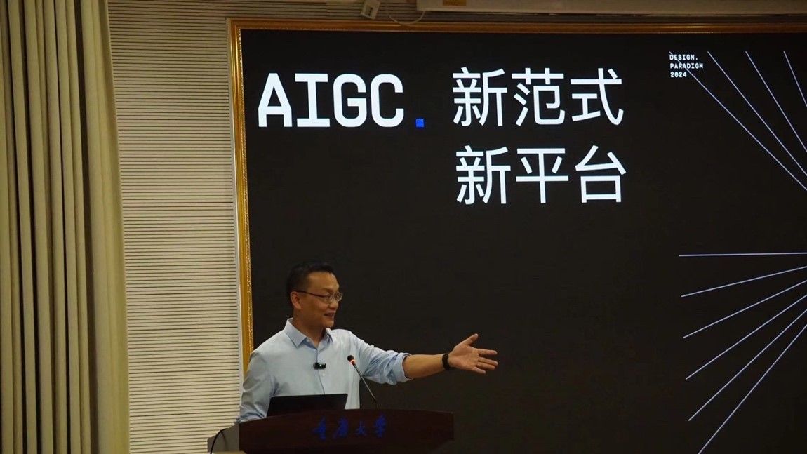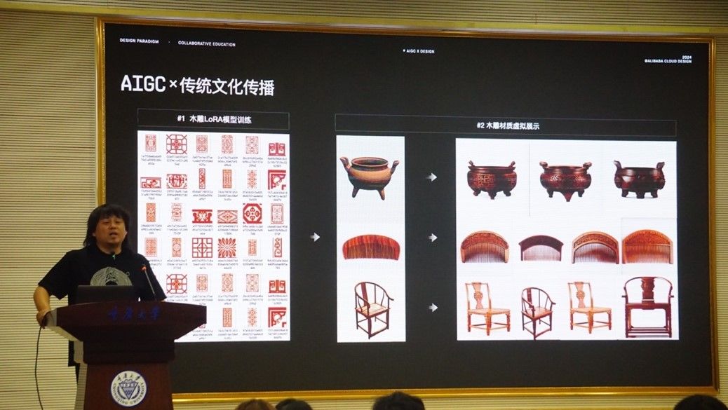 王路平在演讲中不仅探讨了AIGC在设计领域的创新应用,还分享了AIGC在教育领域的融合与实践,特别介绍了御书屋