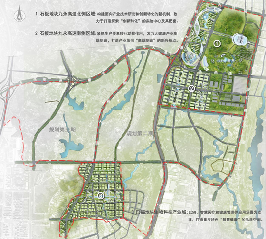 石板地块九永高速两侧区域效果图 巴福地块生物科技的产业城区域效果图