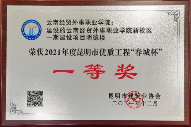 “春城杯”是昆明市为鼓励施工企业加强工程质量管理,争创工程,推动全市建设工程质量总体水平的提高而设立的,是昆明市工程类最高行业奖。实践类项目的设计规模与获奖是学科评估的重要指标之一,本次实践类项目获奖也较好地支撑了设计学科的良性发展。