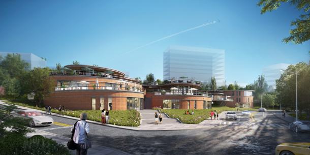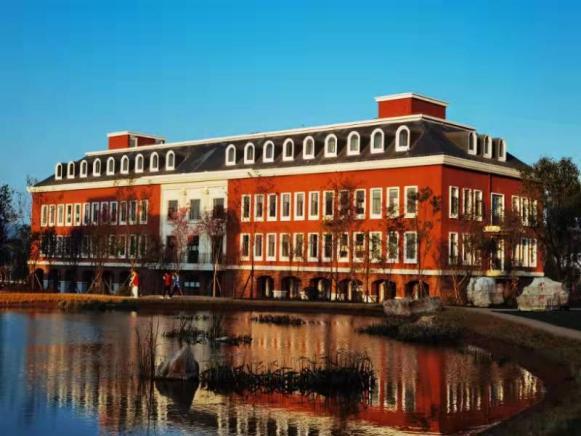 期建设项目厚德楼、明德楼,主题风貌以欧式+现代、典雅风格为主,穿插少量的现代建筑。色彩以土红色、暖黄色、浅灰白为主;外墙材质采取砖、石材、金属、玻璃、木质、仿石涂料为主要材料。总体建筑布局顺应场地地形的主要特征,以自由布局体现校园风格,同时通过强化建筑细部设计、控制良好的比例关系凸显文化概念。
