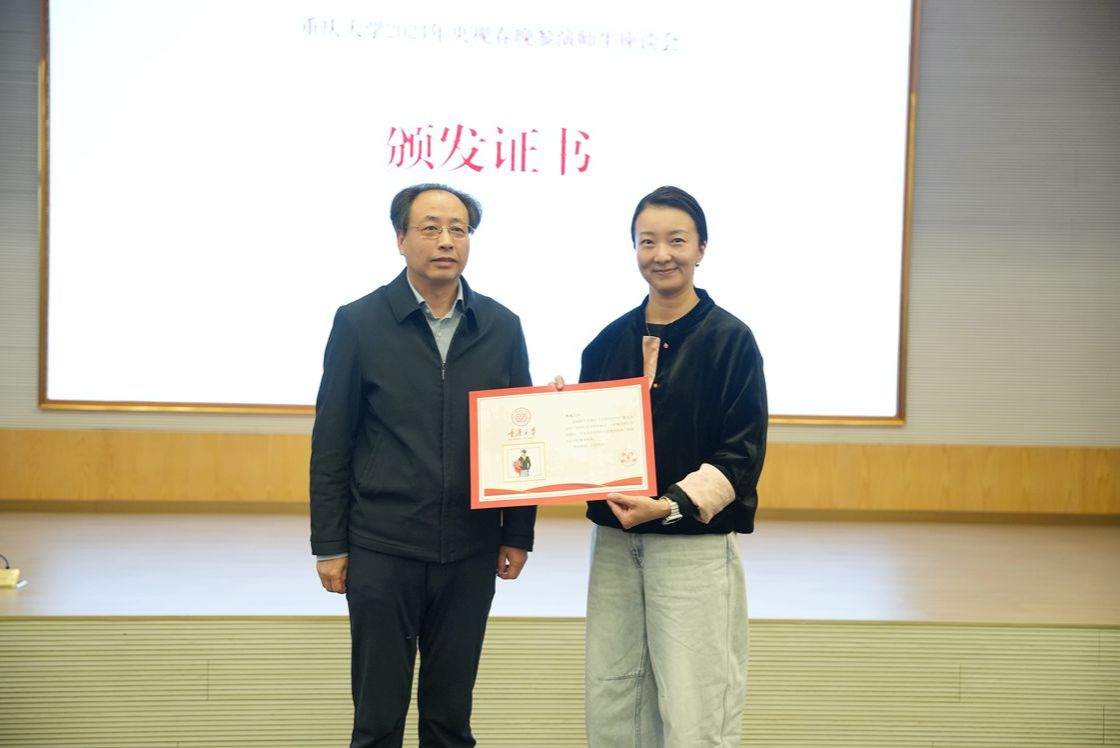 座谈会上,校长为参演师生逐一发放荣誉证书并合影留念。