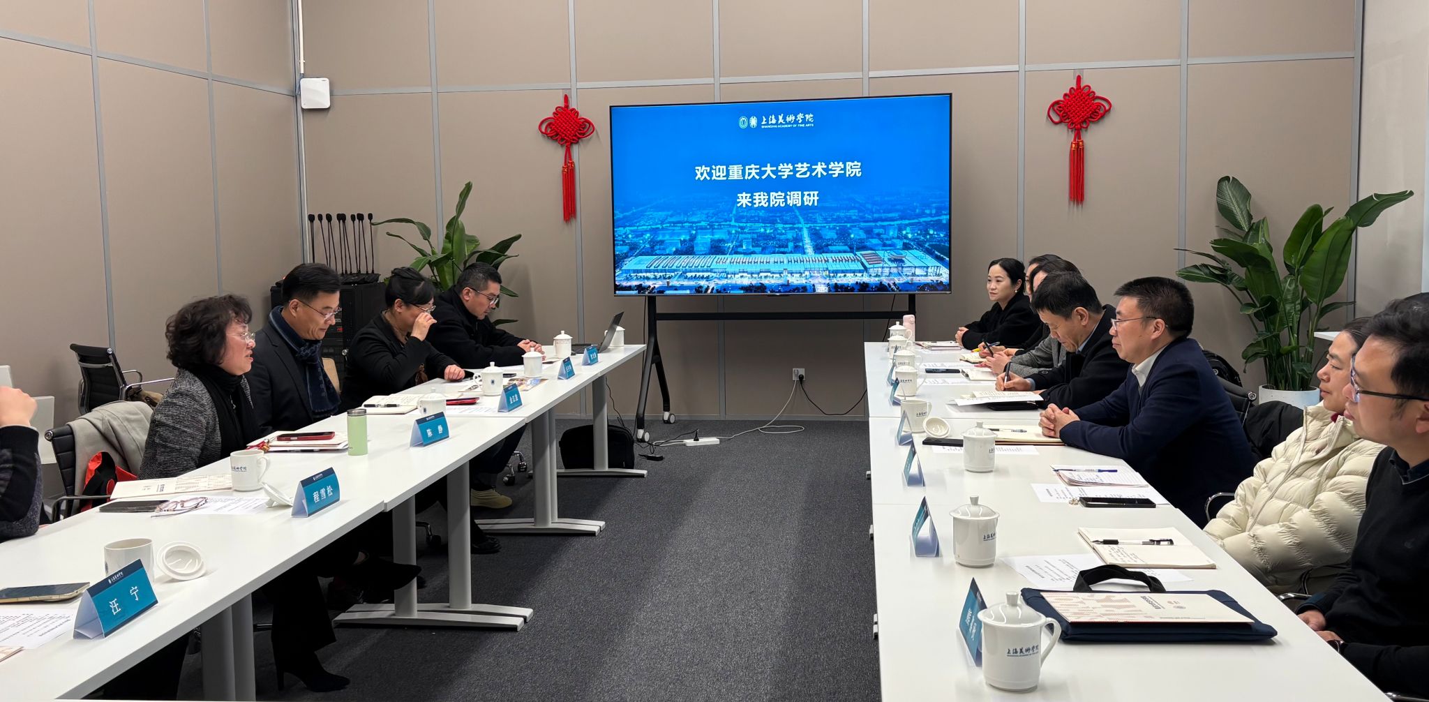 20日下午,学院一行到上海大学延长校区,首先参观了国家级实验教学示范中心——上海大学公共艺术技术实验教学中心,随后开展了座谈交流。上海美术学院党委书记陈静、执行院长金江波、副院长程雪松、副院长毛冬华等学院领导予以热情接待,双方就艺术类学术评价体系、学院组织结构、人工智能时代美术与设计的发展思路、如何培养一专多能人才、专业基础的教学工作等话题进行了交流探讨。 双方表示,愿意充分发挥东部与中西部的各自优势,形成资源互补与联动机制,为促进中西部艺术教育高质量发展注入新动能,共同服务国家教育与文化发展战略。双方还达成初步共识,愿意共建国际化艺术教育平台以促进优质课程资源共享与学术交流互鉴,共建国家级实验室以探索跨学科人才培养模式,联合培养高层次人才以提升育人质量。