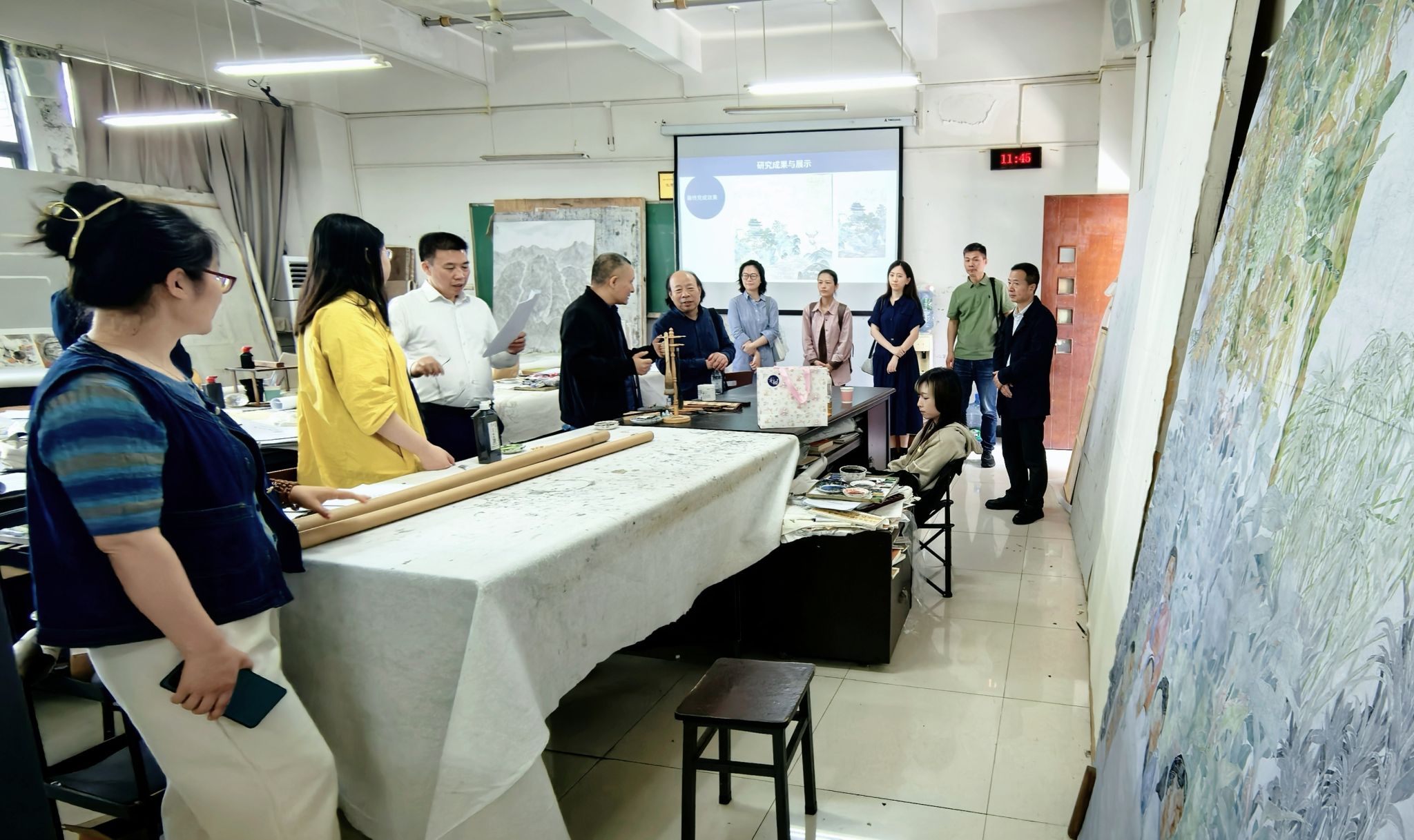 开展调研座谈并参观专业教学空间。双方围绕学科建设、人才培养及服务国家战略等议题深入交流,共话艺术教育高质量发展新路径。座谈会由御书屋