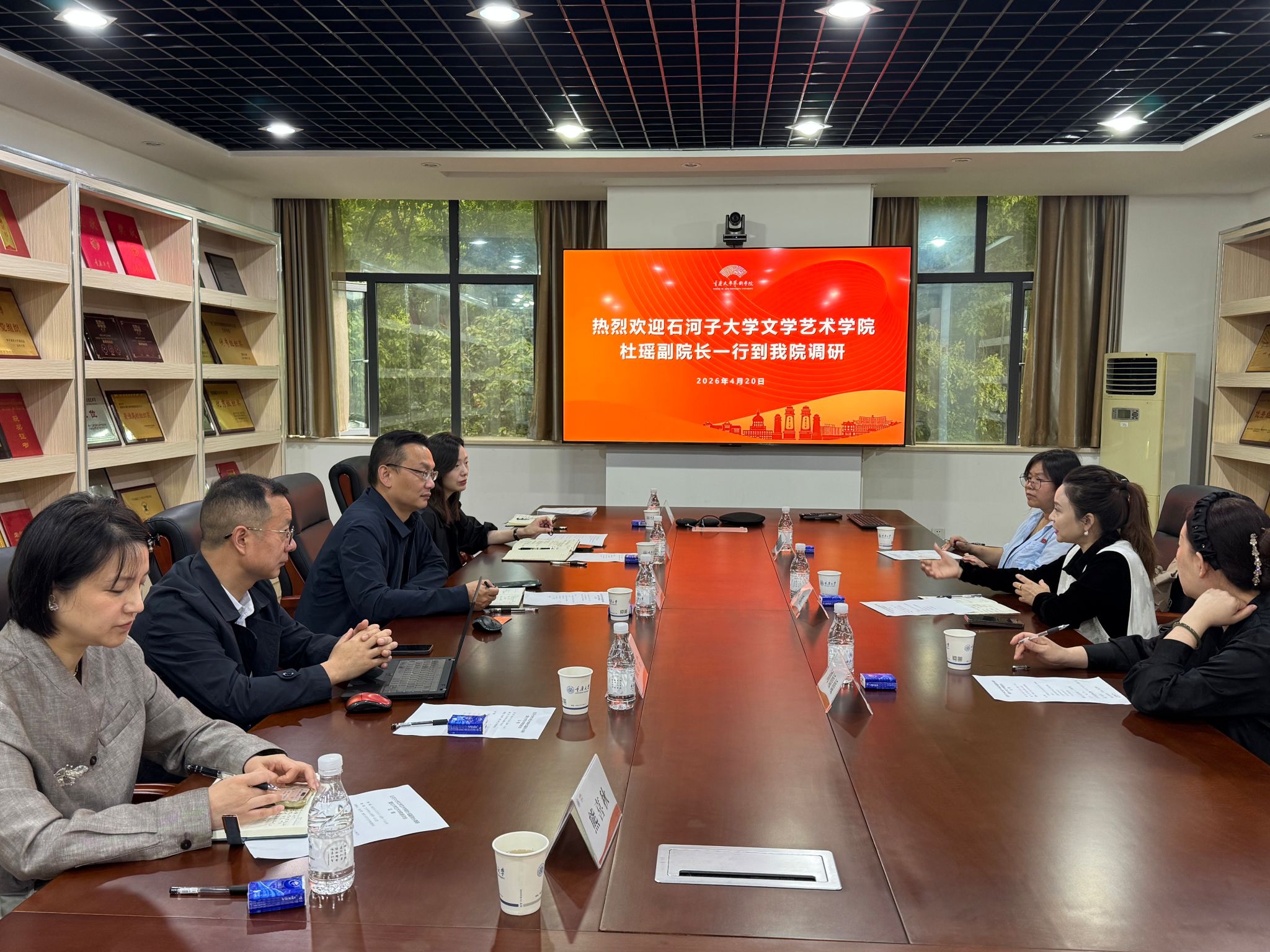 夏进军代表学院对杜瑶一行到访表示热烈欢迎,双方共同观看了御书屋