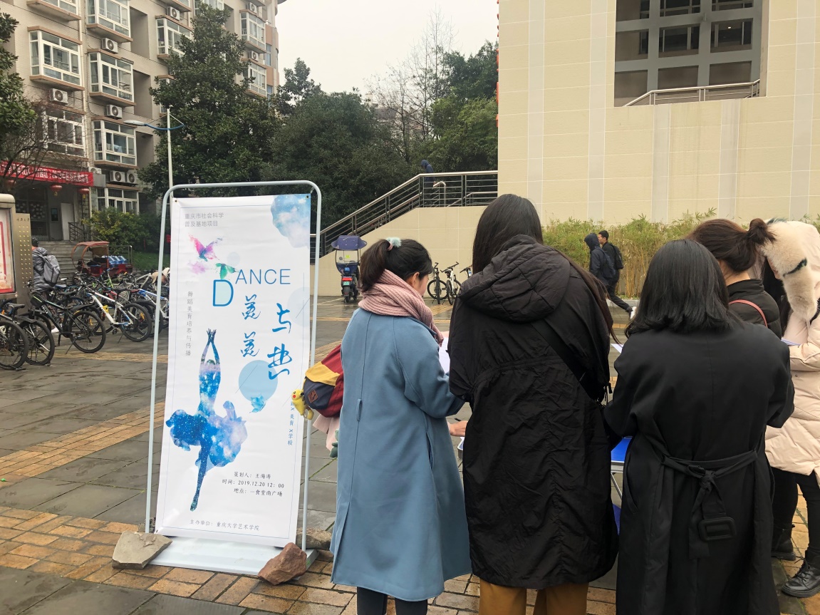 虎溪校区一食堂南广场举办了“重庆市社会科学普及基地“2019年科普系列活动之一《美美与共——舞蹈美育培养与传播》科普活动。本次活动主题鲜明,形式多样,趣味十足,引来大批学生驻足,并积极参与活动。现场气氛活跃,科普活动圆满成功。