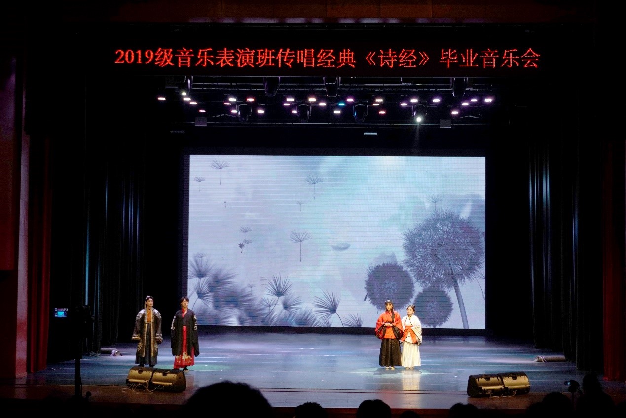 音乐系承办的《诗经》经典传唱展演系列活动,通过三周的短暂排练,由音乐系2019级音乐表演毕业班在虎溪校区兰园大剧场拉开帷幕。