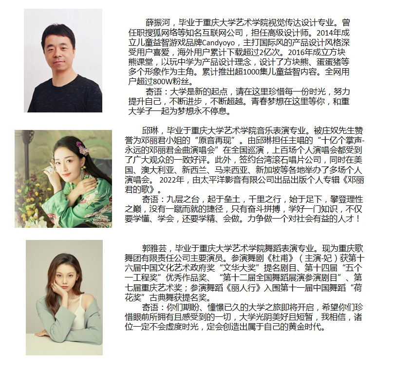 “双一流”顶尖高校的学科优势、良好的办学设施及优美的校园环境,学院已经成为培养美术、设计类高级创作人才和音乐、舞蹈高级表演人才的摇篮。学院师资力量雄厚,拥有一批国内知名专家教授和海外留学归国人员,其中教授、副教授占比达40%。设计学、美术学和新兴交叉学科数字设计与艺术传播为重庆市重点学科。学院本科教学注重突出专业特色,已形成较为完备的美术、设计、音乐、舞蹈专业教学体系,学术氛围活跃,办学成就卓越。