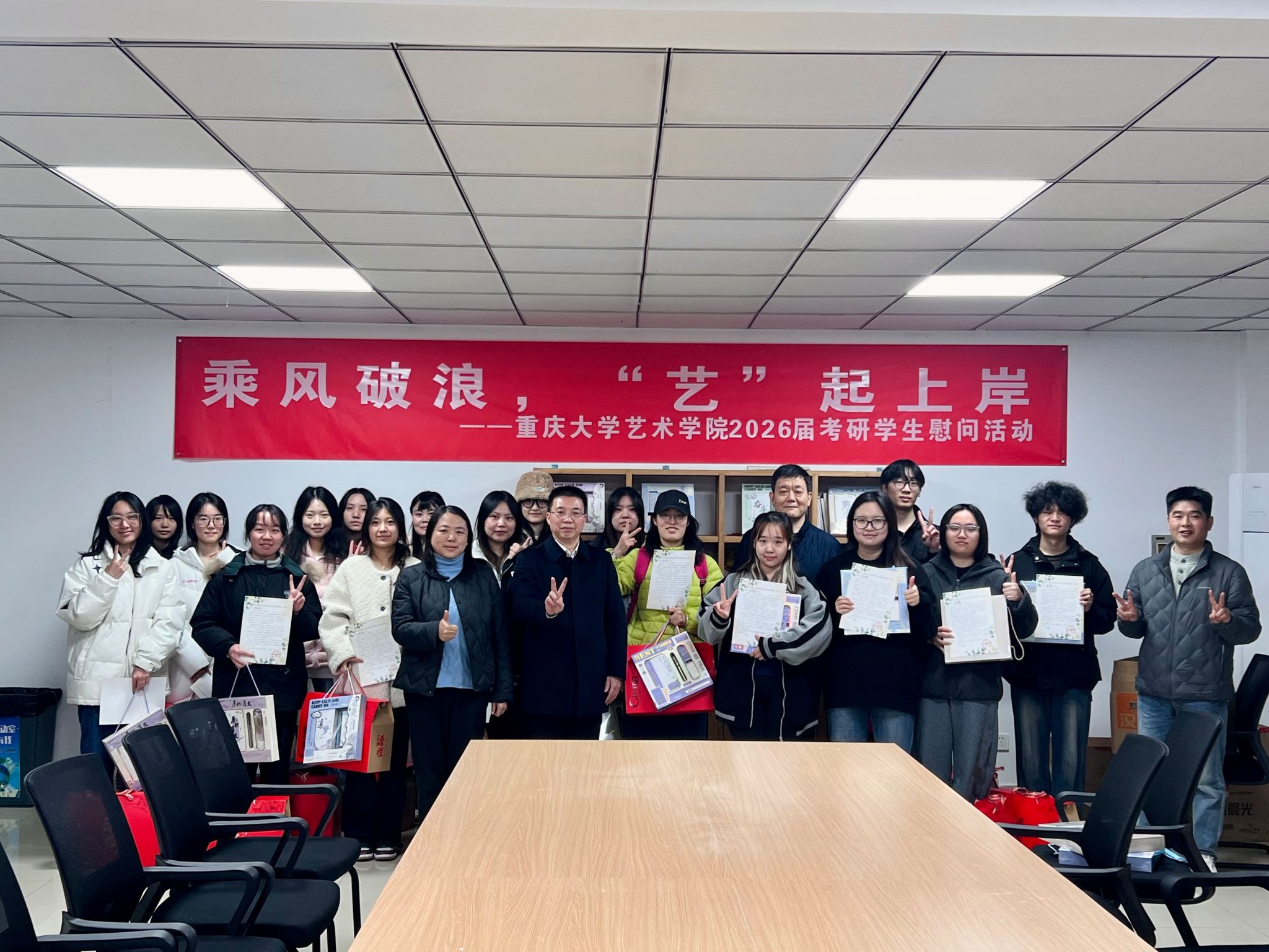 随着2026年全国硕士研究生招生考试日益临近,为帮助考研学子缓解备考压力、提振冲刺信心,12月11日下午,御书屋 于虎溪校园松园六栋二楼党团活动室开展慰问活动。学院党委书记蒋华林、院长张楠木出席活动,为即将踏上考场的学院考研学子送上诚挚的关怀与温暖的祝福。活动由党委副书记王琦主持。2022级辅导员陈龙参加活动。张楠木首先代表学院向全体考研学子致以深切的问候与美好的祝愿。他简要分析了当前考研形势,鼓...