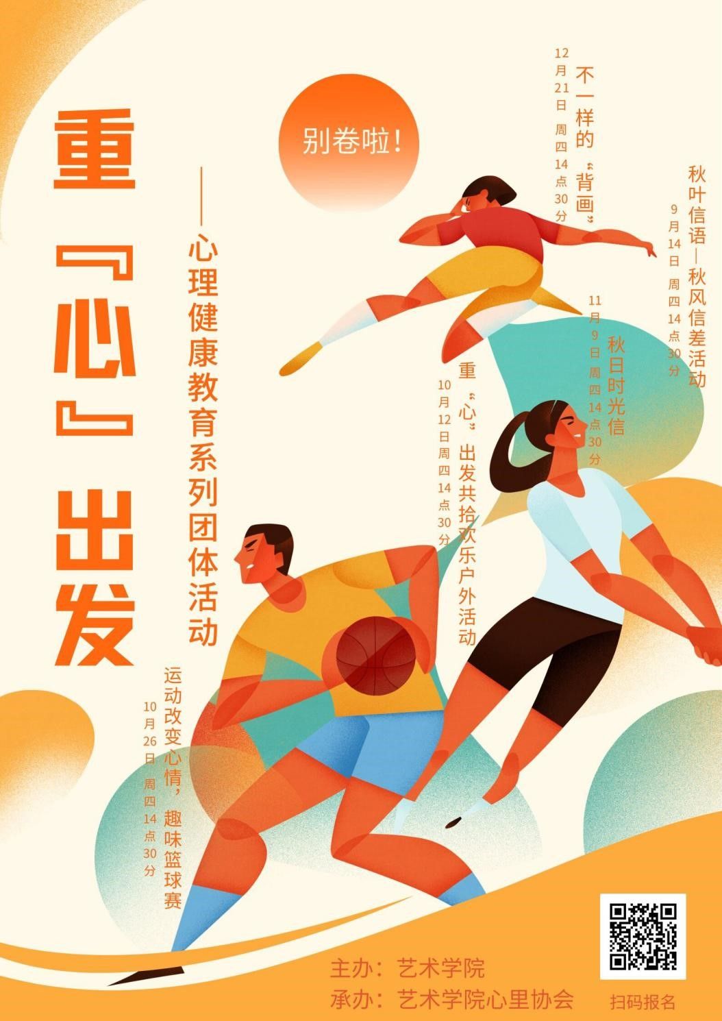 为丰富学生课余生活,做好心理育人工作,御书屋 依托学院心理协会,在2023秋季学期面向全院学生开展了5期团体心理辅导系列活动。9月份开展了“秋叶信语--秋风信差”活动,同学们一起走进秋天,感受美丽重大,共同创作秋叶情绪画,学会察觉、识别、表达情绪。10月份开展了“重‘心’出发,共拾欢乐”和“运动改变心情,趣味篮球赛”户外团体心理辅导活动,旨在减轻同学们学习生活中的压力和烦恼,在忙碌又紧张的学习之余,找...